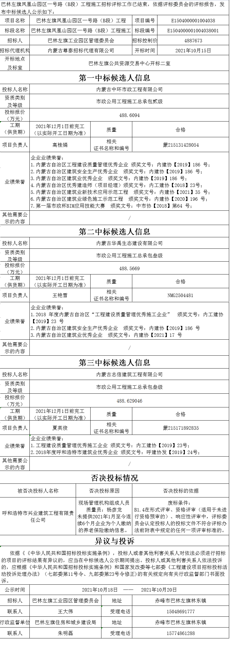 巴林左旗鳳凰山園區(qū)一號路(B段)工程